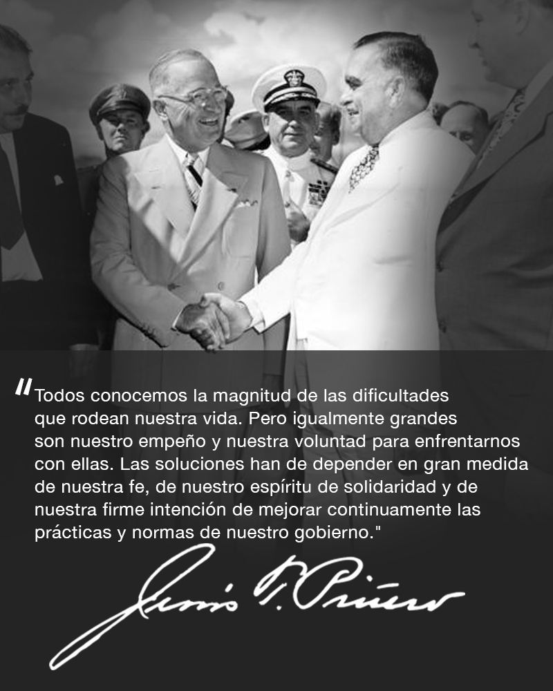 "Todos conocemos la magnitud de las dificultades que rodean nuestra vida. Pero igualmente grandes son nuestro empeño y nuestra voluntad para enfrentarnos con ellas. Las soluciones han de depender en gran medida de nuestra fe, de nuestro espíritu de solidaridad y de nuestra firme intención de mejorar continuamente las prácticas y normas de nuestro gobierno."
